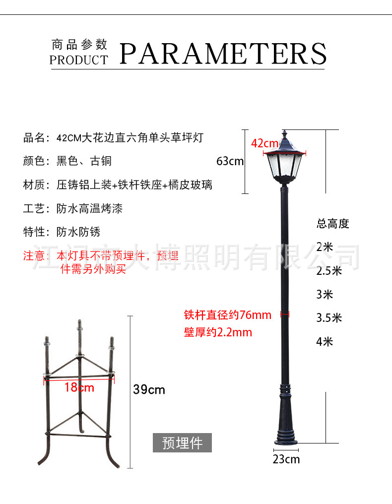 LED庭院燈歐式壓鑄鋁花邊直六角小區景觀燈廣場別墅照明燈具廠家